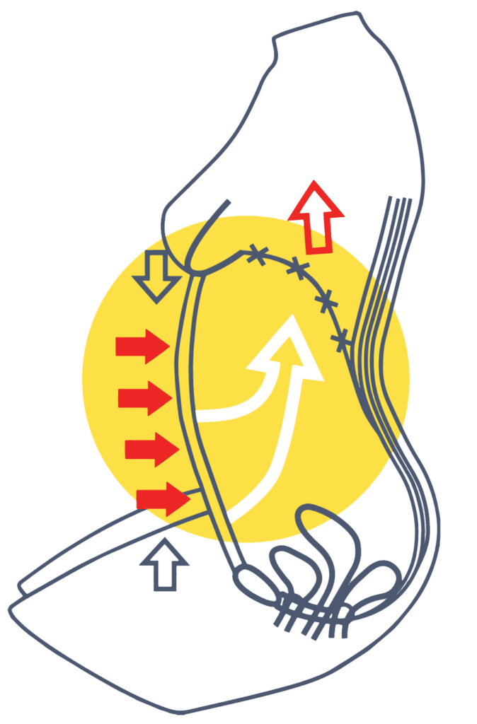 doivent rediriger les pressions abdominales vers le haut avant que celles-ci ne s’exercent sur le